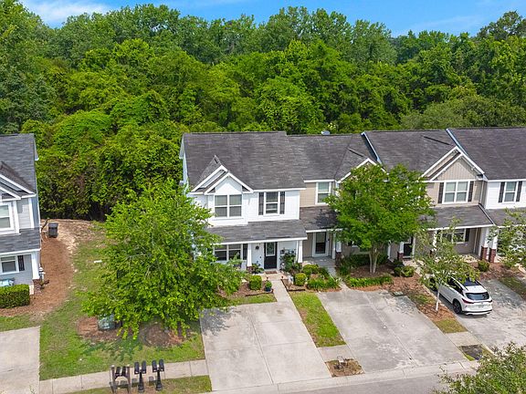 Welcome Home to this gorgeous, end unit Townhome! As you walk in you're greeted by lovely hardwood flooring that flows throughout the first floor dining room, Kitchen and living area. The kitchen boasts upgraded cabinets and granite countertops! Right off the living area is a Half Bath and through the sliding glass doors is a private patio area with additional storage and backed up to woods and a pond for added privacy. Upstairs you'll find the laundry room with double stacked washer/dryer combo and two guest bedrooms that share a full bathroom. Across the hall is the large Primary Suite with double walk-in closets and en-suite bathroom! This home is move in ready and is just minutes to shopping, restaurants, gyms, the Herbert Jessen boat landing and a short drive to the Charleston AFB,Boeing and the Charleston International Airport! NEW HVAC in 2025. HOA covers exterior maintenance, Yearly pressure washing and termite bond!