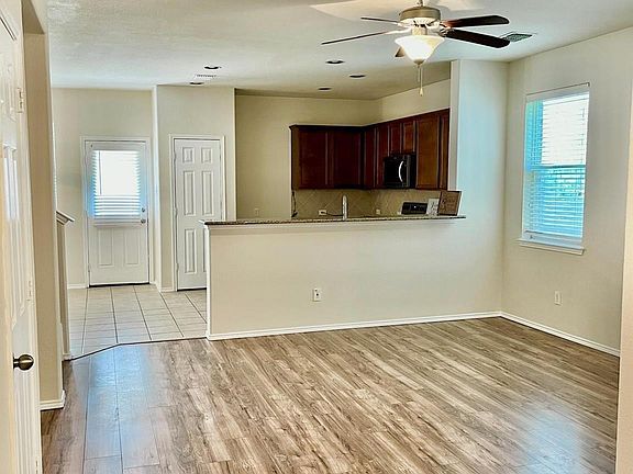 Discover modern comfort in this beautifully designed two-story home. The open-concept main floor features a bright kitchen with stainless steel appliances, a convenient breakfast nook, and a flowing layout perfect for entertaining. The standout downstairs primary suite is a true retreat, complete with a large walk-in closet, dual vanities, a garden tub, and a separate shower. Downstairs also includes a versatile office (easily converted to a 5th bedroom), a handy half-bath, and a laundry room. Upstairs, you'll find a generous second living area, three additional bedrooms, and a full bathroom. Enjoy outdoor living on the covered patio in the fully fenced yard, maintained with ease by the built-in sprinkler system. This move-in-ready home won't last long.