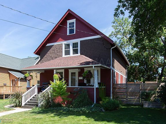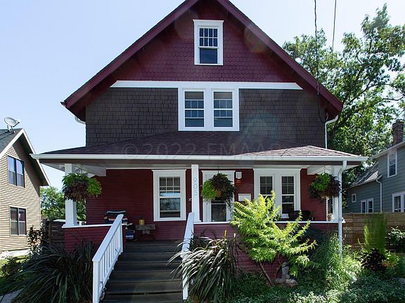 DOWNTOWN DESIGN DREAM! 1914 2 story just 3 min from NDSU & 4 min from the heart of downtown Fargo. Step up to the charming front porch and enter in to the perfect blend of character with desired modern ameneties. Origninal hardwood floors w an open floor plan, new windows, a great kitchen w an updated 1/2 bath, & a slider patio door from the dining room out to a dream designed backyard oasis out of a magazine! A custom designed pine/cedar deck & fencing w a stamped concrete patio surround by lush landscaping & privacy. A huge 2.5 stall garage w additional parking slab. Upstairs features 3 great bedrooms w a full bath. The basement was fully finished & custom designed in 2021 offering a modern 3/4 bath, 4th bedroom & cozy family room. This home is an epic must see!
