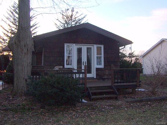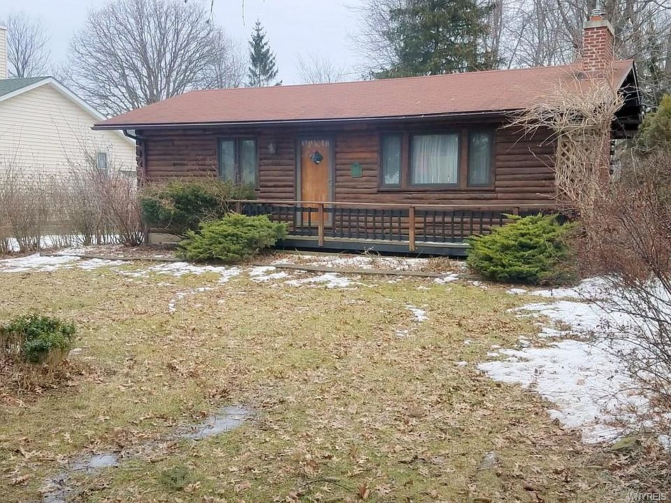 CHARMING LOG EXTERIOR- STARTER OR RETIREMENT - TREED SETTING - 232' DEEP LOT - FAMILY BUILT AND OWNED -100% LOG - BRICK CHIMNEY - PERENNIAL GARDENS - DECK FRONT ARBOR - PORCH 2 SIDE ENTRANCES, ONE TO KITCHEN/BASEMENT - 2ND TO NEW HARDWOOD ENTRY HALL - FRENCH DOORS - KITCHEN/NOOK AREA - 3RD BEDROOM-USE AS DINING OR FAMILY ROOM. SIDE ENTRY HAS DECK THAT WRAPS AROUND TO BACK - BRAND NEW CARPETED LIVING ROOM/HALL - WOOD BURNING FIREPLACE INSERT - GALLEY SOLID MAPLE KITCHEN - "NOOK" EATING AREA -DOUBLE SINK - BI ELECTRIC STOVE TOP W/FAN - BI OVEN - NATURAL WOODWORK - HAND CRAFTED HARDWOOD DOORS - LINEN CLOSET - "DOUBLE ENTRY" PEDESTAL C/T BATH - EFFICIENCY GAS HEATING & CENTRAL AIR, NEWER HW, CBERS - EST ROOF 10 YRS-50 YR MATERIAL - SHED/GAZEBO-LAWN SWING SWING -EASY APPOINTMENTS