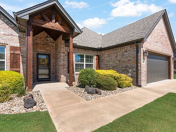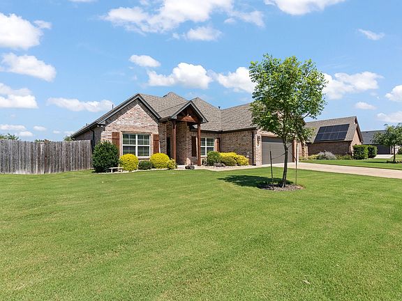 Welcome to this beautifully maintained one-owner home, nestled in a well-established neighborhood with quick access to the Chisholm Trail Parkway—making your commute a breeze. From the moment you arrive, the pride of ownership is evident, beginning with the meticulously cared-for front yard. Step into the backyard oasis, perfect for relaxing or entertaining. Enjoy lush landscaping, an east-facing yard for pleasant evenings, a custom privacy wall, and a handy storage building for tools or seasonal items. Inside, the entryway offers a warm space to welcome guests, leading to a spacious formal dining room. The vaulted ceiling in the living room creates an open, airy atmosphere, while the cozy gas brick fireplace adds a touch of charm for cooler days. The kitchen features custom cabinetry, granite countertops, and a large walk-in pantry—ideal for those who love to cook or entertain. The open-concept layout flows seamlessly into the breakfast area, where you can enjoy your morning coffee with views of the peaceful backyard. The generously sized primary suite offers a relaxing retreat, complete with a large vanity with dual sinks and a soaking tub in the ensuite bath. Each guest bedroom is comfortably sized, and the laundry room is thoughtfully designed with built-in cabinets and a storage closet. For those with a larger vehicle, the garage can accommodate a lifted four-door half-ton truck—and even includes an extra closet for tools or seasonal storage. With new carpet throughout and a home that has been very gently lived in, this is a rare opportunity to own a lovingly cared-for property in a prime location.
