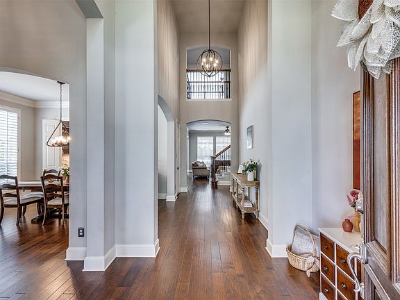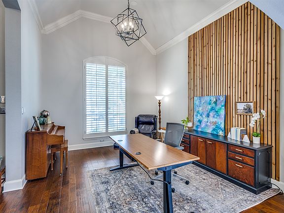 Nestled on a quiet interior street surrounded by mature shade trees, this home offers both elegance and comfort. The open-concept first floor is perfect for entertaining, featuring two spacious living areas and two dining spaces. This beautiful home boasts 5 bedrooms, 4 baths, and an expansive 3-car garage with epoxy flooring. Enjoy engineered hardwood floors throughout the first level and an updated chef’s kitchen with quartz countertops, an oversized island, double ovens, walk-in pantry, and butler’s pantry. The primary suite is a true retreat with large windows, ensuite bath, and an oversized walk-in closet. A second downstairs bedroom offers flexibility as a guest room, office, or exercise space, complete with an ensuite bath and exterior entry. Upstairs, discover a large game room, separate media room, and three additional bedrooms. All upstairs carpet has been replaced with stylish laminate flooring. Step outside to your own private backyard oasis—a serene, landscaped retreat with a covered stone patio, built-in grill, and plenty of shade for relaxing or entertaining. Located in the heart of Stonebridge Ranch, this home provides access to exceptional community amenities and a prime location for your next phase of living life!