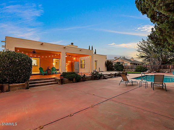 This beautiful Las Cruces property on a spacious ⅓-acre lot offers everything you've been looking for- a sparkling pool, vibrant green lawn, and a backyard surrounded by mature rose bushes, pear and nectarine trees. It's the perfect space to unwind, entertain, or simply enjoy the beauty of Southern New Mexico living. The home features 3 bedrooms, 2 baths, and a comfortable layout designed for everyday living. Thoughtful updates where it matters most include a new roof, HVAC system, and water heater (2023). Plus a new pool motor, timer, and filter (2025) to keep your backyard paradise running smoothly. Enjoy evenings by the cozy fireplace, mornings under the covered patio, and weekends filled with poolside fun. With RV parking and a 220 hookup, there's room for your toys and hobbies, too. If you've been dreaming of a home that's been cared for in all the right ways, with a backyard that feels like a retreat, this one is a must see!
