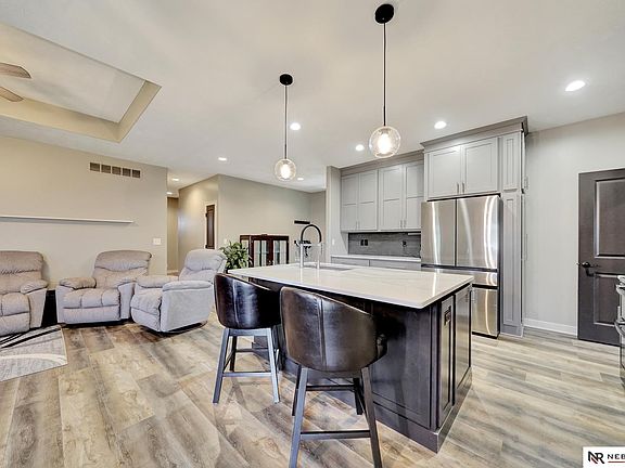 Welcome to this spacious 5 bed, 3 bath walkout ranch in the highly desirable city of Hickman, located in the Norris School District. This home offers a 3-stall garage with epoxy floor, a covered composite deck and a large patio with hot tub, perfect for relaxing or entertaining. The fenced yard features underground sprinklers, a raised garden bed, huge storage shed (with electricity) and a newly added concrete walkway. Maintenance-free brick and vinyl siding provide lasting curb appeal. Inside, you'll find an open floor plan with a beautiful kitchen featuring quartz countertops, soft close cabinets & drawers, stainless steel appliances (including a new refrigerator) and a functional island with built-in storage cabinets. The living room offers a cozy electric fireplace, while the spacious primary suite includes a walk-in closet and double vanity. All bedrooms are generously sized, and the finished walkout basement includes a large family room for added living space.