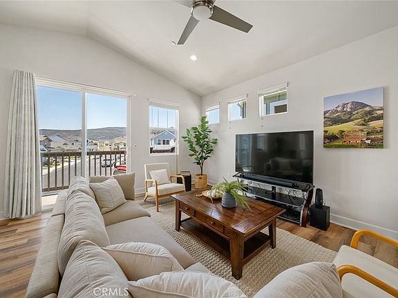 This beautifully designed Craftsman styled home is situated at the end of a cul de sac and includes 3 bedrooms and 2.5 baths; is apprx 1639sf and sits on a 3828sf lot. Built in 2021, this free-standing home is part of the Legacy Collection at San Luis Ranch. Enjoy the open floor plan with 2 bedrooms and 1 bath on the first floor and the primary bedroom and bath, kitchen, living/dining area, laundry and half bath on the second level. There is a view balcony off of the living area. Some features include luxury vinyl flooring throughout, quartz counters throughout, solid wood cabinetry, an oversized island, stainless steel appliances and under cabinet lighting in the kitchen, high ceilings with canned lighting, a separate laundry room with sink, decorative ceiling fans and more. The solar system is owned and there are 16 roof panels along with an electric vehicle charger inside the 2 car garage. This lot allows for an ADU and is conveniently located across from the SLO Ranch Farms & Marketplace. Enjoy the close proximity to the many stores, restaurants and outdoor activities. This property should not be missed! Information not verified.