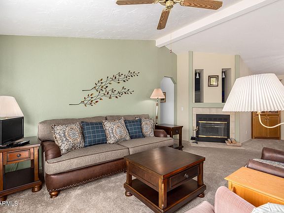 Enjoy beautiful sunrises while sipping coffee from your upper deck in the sought-after Florence Gardens, where you OWN the land! This home was a model home! It's beautiful, move-in ready and sits in a quiet cul-de-sac. Your home has a newer roof, carpet, and laminate flooring. A large laundry room with washer & dryer included, dual-fireplace between den and living room, seating desk area in kitchen, breakfast nook and formal dining, textured interior walls with fresh paint, upper deck with mountain views, and more. Your partial oleander ''fencing'' creates just enough privacy, along with a screened-in Arizona room, you'll have plenty of entertainment options. A covered carport, storage shed with workbench, desert landscaped yard for easy maintenance, and more!
