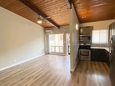 Large 1 bed 1 bath newly remodeled unit with parking, high vaulted ceilings, laundry in unit, and AC! This beautifully remodeled home comes with a lovely kitchen featuring stainless steel appliances, including a stove and refrigerator. Parking is available! Laundry in the unit is available! Near public transportation, major freeways, shopping, and dining options. None
