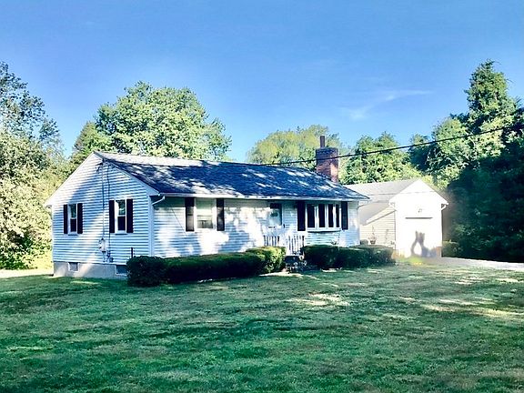 Sought after location on Wilbraham Mountain! Pretty ranch on a beautiful, almost 1 acre lot with mature trees, stonewalls dating back 100 years and plenty of room for future outdoor spaces. Attached 1 car garage with storage. Paneled breezeway with sliders, opens to backyard with sunset views. Kitchen with birch cabinetry, dining area, wall oven, vinyl flooring and countertop range opens to Living room with hardwood flooring, fireplace, bay window and 2 coat closets. Tiled bath with birch double vanity, vinyl flooring and 2 good sized bedrooms with hardwood flooring complete first floor. Well cared for, one owner home with updates, including vinyl siding, roof and replacement windows. Perfect home for starting out, downsizing or adding on! Located minutes to route 20 for easy commuting. New septic system to be installed prior to closing. Please schedule on-line only at Showingtime, easy to show!