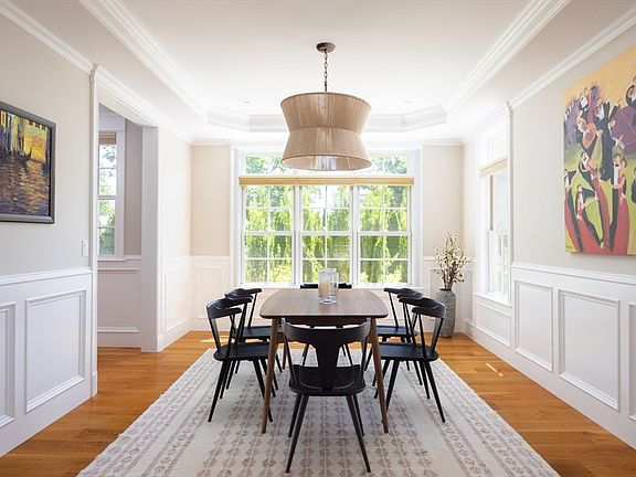 Situated on .54AC lot in Brookline’s Chestnut Hill, this stunning residence, completed in 2018, offers stylish entertaining and modern living. Highlights include multiple fireplaces, detailed millwork, wide white oak floors, expansive windows, and sunny exposures. Spanning 6,268SF, home features thoughtful layout with formal & informal spaces. 2 story foyer connects the 1st floor, including living & dining room. Spacious chef’s kitchen with island & eat-in flows into family room with fireplace and den with backyard access. Mudroom and ½ bath complete floor. 2nd floor features primary suite with a spa-like bath and fireplace, 3 add’l beds, office, 2 full baths, & laundry. Lower level includes bedroom, full bath, laundry, rec room & gym. Property complete with oversized deck, patio with fire pit, level yard, solar panels & 3-car garage with charging station. Desirable location close to “The Street”, top public & private schools, and provides easy access to Longwood, Boston, & Cambridge.