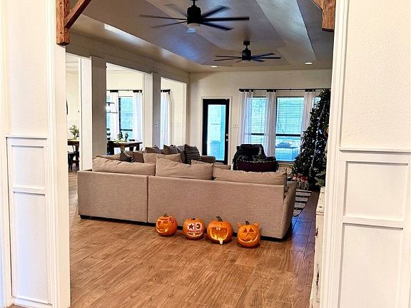 This beautifully updated 5-bedroom, 2.5-bath home sits on a large, pool-sized lot. Step through the foyer into a spacious living area featuring a cozy fireplace, perfect for gatherings. The open-concept layout connects the living room to the kitchen and dining areas, which offer ample storage, a large island, and modern appliances.