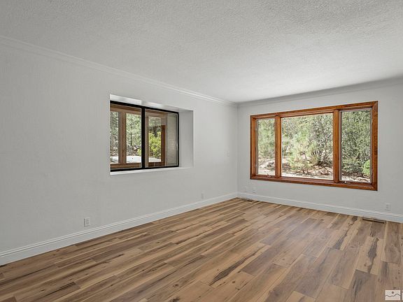 This stunning home offers an unparalleled opportunity to experience the perfect blend of tranquility, natural beauty, and adventure. Fully landscaped, this home is one of only ten sites in Galena adjacent to the Toiyabe National Forest with hiking and mountain bike trails. Snowshoe or cross-country ski out your back door, with downhill skiing a short ten-minute drive to Mt. Rose-Ski Tahoe. This tranquil sanctuary is a forested oasis amidst towering pines and breathtaking forest views. Immerse yourself, in the serenity of this meticulous home offering comfort and elegance. This mountain home has a den/study with forest views from your desk. Indulge in modern living with extensive storage and a family room. The kitchen features granite countertops, solid wood custom cabinets, a Jenn Air cooktop, a Bosch dishwasher, and a beautiful National Forest view. The three bathrooms include a custom primary bath, containing an oversized open 6x6 foot shower, custom tub, and dry sauna, the oversized primary bedroom has a seating area, a gas log fireplace, and a video area. The home has new flooring throughout, with luxury vinyl with a 20mm cover on the main level and plush carpeting upstairs. The large living room features a new wood-burning/pellet stove and high wooden ceilings with gorgeous wood beams. The dining room has a glass wall overlooking a fully landscaped backyard. The outdoor experience is equally impressive, with more than 1,200 square feet of private redwood deck! Enjoy the private surroundings while soaking in the in-deck hot tub or entertain your friends with plenty of space. This home features solar hot water, 120-gallon storage capacity, and passive solar with multi-use sunspaces. Use the large sunspace for a solarium with plants, an exercise area, or both. The roof is steel shingle and comes with a transferable warranty, with 40 years remaining on the warranty. This home is efficient, private, and offers luxurious living.