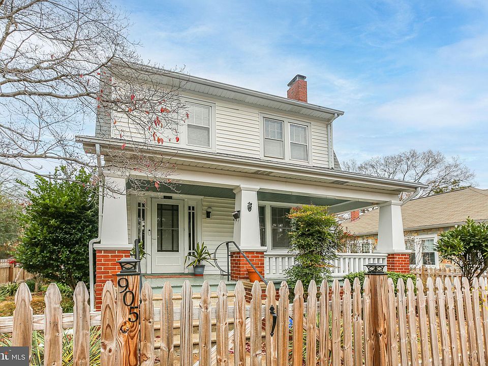 Welcome to this beautifully maintained 1933 Dutch Colonial Craftsman in the highly desirable College Terrace neighborhood—just one block from Mary Washington University and an easy 10-minute walk to Downtown Fredericksburg. Offering over 2,200 square feet of finished living space, 3 bedrooms, 2 full bathrooms, a fenced yard, and an oversized two-car garage, this 4-level home combines timeless architecture with thoughtful modern updates. Step through the front door with glass panes from the inviting covered front porch, a hallmark of this Dutch Colonial’s historic charm. Inside, gleaming hardwood floors flow throughout the main level. French doors open to the bright living room, complete with a brick fireplace and mantel, while the formal dining room seamlessly connects to the kitchen. The updated kitchen features quartz countertops, wooden cabinetry with display cabinets, stainless steel appliances, a GE gas range with built-in spice rack, subway tile backsplash, oversized undermount sink, pantry cabinets, and a cozy coffee nook with extra storage and seating. A small sunlit nook overlooking the backyard makes the perfect reading corner or home office. The finished basement extends the home’s living space with engineered hardwood floors, a full bathroom with stand-up shower and vanity, washer/dryer, and a storage area complete with built-in shelving and a whole-house water filtration system. Upstairs, three comfortable bedrooms share a hall bathroom with classic black-and-white tile, deep vanity sink, and subway-tiled tub/shower combo. A second storage closet adds convenience. A staircase leads to the finished attic with wood flooring, offering endless possibilities as an additional bedroom, playroom, or office. Outside, the large, fenced yard includes a new picket front gate, backyard privacy fencing, and alley access. The oversized two-car garage has been upgraded with new doors, updated electrical, while gutter guards make maintenance simple. Additional features include wood blinds throughout most of the home, smart home upgrades with an ADT security system and Nest cameras, and a host of recent improvements such as updated electrical, plumbing, and fresh interior finishes. Located in the heart of College Terrace, residents enjoy immediate access to the University of Mary Washington, canal path, tennis and pickleball courts, parks, a dog park, and the community garden. Just minutes from Downtown Fredericksburg, VRE, and I-95. Opportunities like this don’t last long in College Terrace-come see why this is the perfect place to call home.