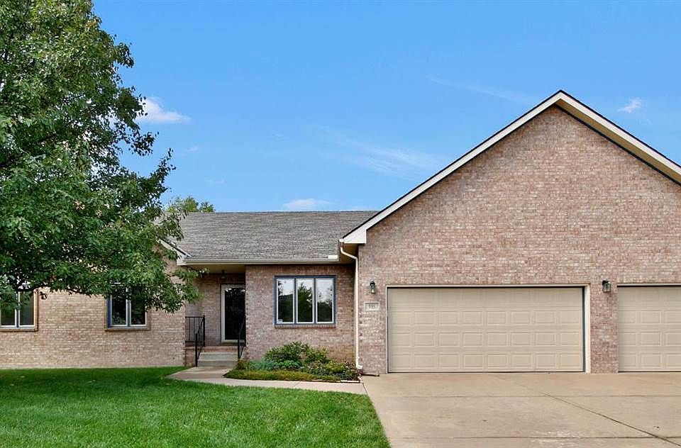 Custom built one owner home situated on a beautiful lake lot is move-in ready! The well appointed floorplan, ideal for entertaining and everyday living, features spacious rooms, a formal dining room, two gas fireplaces, a large eat-in kitchen, main floor laundry, fully finished viewout/walkout basement, large walk-in closets, security system, three car garage, covered deck and a sprinkler system. Windows spanning the back of the home soak the living spaces with natural sunlight and allow for panoramic water views. The oversized eat-in kitchen is well suited for gathering and cooking with a large center island/eating bar, abundant cabinetry, brand new tile flooring, desk area and a pantry. Entertaining is made easy in the walkout basement complete with a large rec/family room with a fireplace and small wet bar, two bedrooms with fabulous closets, a full bathroom and storage. All new flooring throughout (with the exception of basement bathroom); this home is a blank slate waiting for your personal touches! Offering tons for the money and conveniently located in the Goddard School District within minutes of shopping, dining and medical, this turn-key home is a must see!