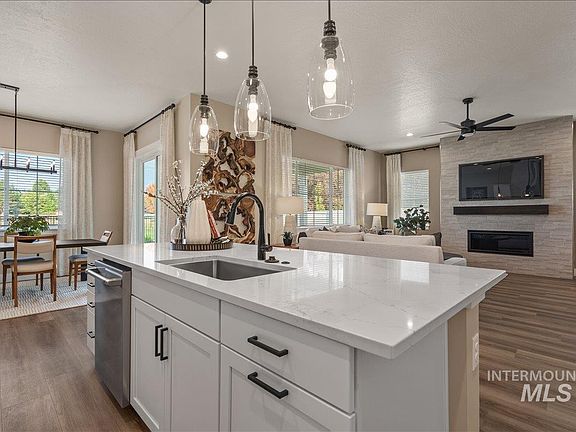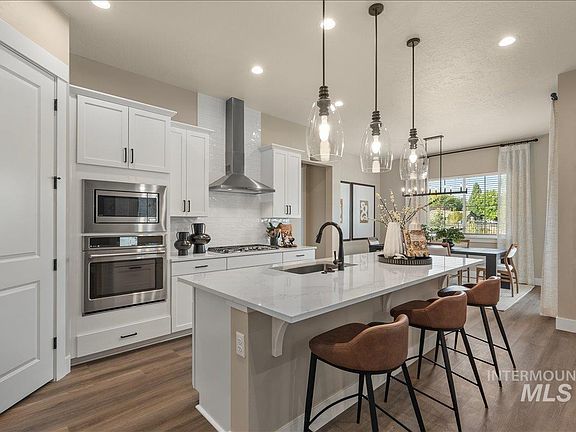 "The Darius / Multi-Generation" by Richmond American Homes, available this October. This home is available to tour daily from 10 AM to 6 PM, and you don’t need an appointment to visit. You can stop by the Information Center at 967 N Falling Water Way, Eagle, ID 83669, where we have the full inventory of completed and upcoming homes, as well as limited build-to-order opportunities. Please feel free to ask about our current builder special offers and financing options. This beautiful community has a premier Eagle location close to dining, shopping, and recreation. The Portfolio collection homes feature elegant luxury finishes such as 10-foot ceilings, gourmet kitchens with quartz countertops, gas fireplaces, covered patios, upgraded soft-close wood cabinets, and deluxe primary baths. All homes come with tankless water heaters, are HERS rated for superior efficiency and low utility bills, and include front and back landscaping, sprinklers, and fencing. Restrictions apply. PHOTOS SIMILAR