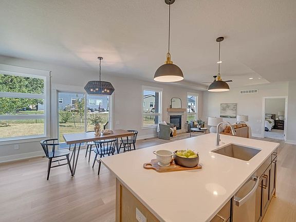 Step into a home that delivers both style and substance—this brand-new build by Kimberley Development is designed for the way today’s families and couples live, gather, and grow. Located in one of Grimes’ most inviting neighborhoods, this standout home combines bold, modern design with a warm, functional layout that feels instantly welcoming. The main level features three spacious bedrooms, including a peaceful primary suite with a custom walk-in closet and a beautifully tiled shower that turns your morning routine into a moment of calm. The kitchen makes a statement with rich dark cabinetry, an oversized island, and a moody, elegant aesthetic that flows seamlessly into the dining and living areas—perfect for hosting holidays or enjoying a quiet night in. Head downstairs to find two more bedrooms, a full bath, and a wide-open family room with a built-in wet bar ready for game day, movie night, or casual hangouts with visiting friends and family. Whether you're looking to spread out, settle in, or stay connected to loved ones nearby, this home checks all the boxes with space, comfort, and standout design in a location that keeps you close to it all.
