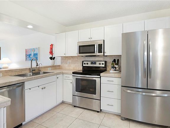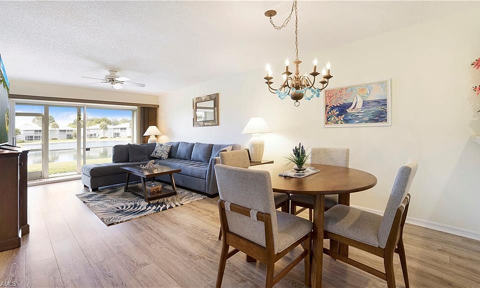 Lakefront serenity meets effortless living in this 1st-floor, 3-bed, 2-bath end unit in Berkshire Lakes. The light and airy open-concept layout—complemented by warm wood-style flooring—connects a spacious living room, dining area, and a modern kitchen that’s as functional as it is inviting. Stainless-steel appliances, generous counter space, and a built-in breakfast nook create the perfect spot for morning coffee or casual meals. The primary suite, framed by bay windows with serene lake views, is the ideal place to wake with the morning light. Enjoy a walk-in closet with custom organizers and an ensuite bath featuring a double vanity with elegant copper sinks. Each of the guest bedrooms also includes added closet organizers, offering ample storage space and flexibility for guests or a home office. From your screened lanai, take a short stroll to the community pool, or wander along miles of scenic paths winding around the lakes and lush landscaping that Berkshire Lakes is known for. With a detached one-car garage, a prime Naples location, and close proximity to 5th Avenue’s vibrant dining and boutique shopping, Golden Gate Community Park, and the sugar-sand Gulf beaches, this residence perfectly blends the ease of condo living with the best of the Southwest Florida lifestyle. This lakefront haven is move-in ready and waiting to welcome you home.