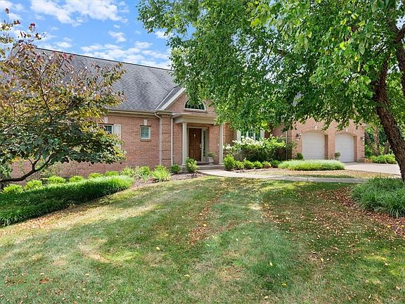 Truly special low maintenance free living in this custom built single home in the popular Forest Manor community. Enjoy a lovely 2 story entry, hardwood floors and great flow through to the living spaces and a first floor primary suite with fabulous closet space and an oversized bathroom. A well-equipped kitchen with a huge center island, pantry, endless storage, dining area and built in desk too. You will love the cozy paneled den/study with window seat and built ins and a pretty living room with fireplace and attractive bookshelves. A patio door out to the deck with an awning, overlooking the private fenced yard with a pond and waterfall. Enjoy the convenient 1st floor laundry with loads of storage and access to the attached garage.Upstairs there are 2 spacious bedrooms with roomy closets and a Jack 'n' Jill bathroom with double sinks, also a studio or 4th bedroom w/ an ensuite 1/2 bath. Fantastic walkout game room, 1/2 bath and a huge storage room. HOA covers grass and snow removal.