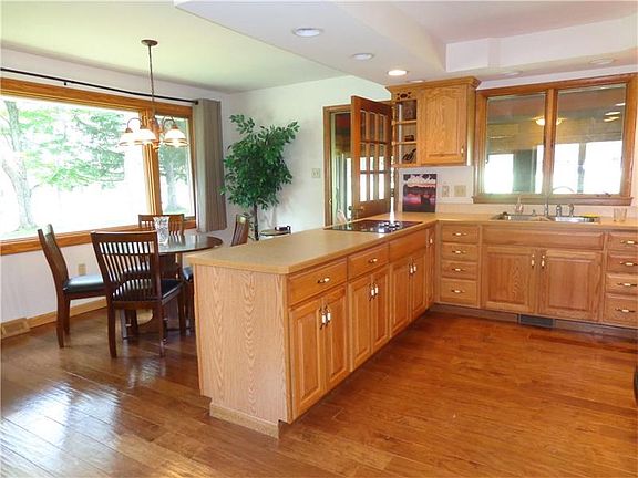 Looking for peace, tranquility, your own lake, and 4 or 5 car detached working garage you've just found it- the perfect split level nestled on 4+ acres in the heart of Hermitage has space galore. 1st level has updated oak kitchen with center cooking island and large dining area with laminate wood floors. From there enter a 13X19 casual living room with stone fireplace and wall of windows overlooking 2 acre stocked lake, which is up to 10 feet deep in places- Great for swimming or ice skating. Sunk-in 10X30 sunroom further accentuates outdoor casual living leading to large patio. Perfect outdoor fun including fireplace. Basement has second fireplace with partially finished rec room, large storage area, and 1/2 bath. Full bath and laundry complete next level, then step up to 3 nice size bedrooms and bath. Home also has integral one car garage. Below the house and pond is the large 4-5 car garage and workshop.