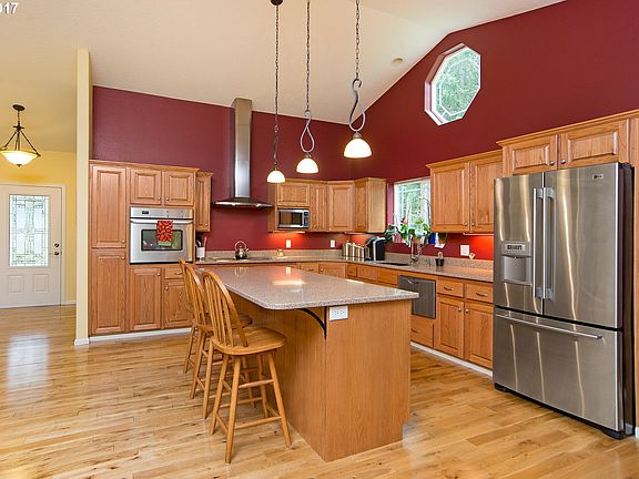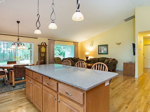 Looking for a private wooded setting. This one level home sits nestled amongst the trees. Custom built in 2005 w/an open floor plan, hardwood floors & vaulted ceilings. Kitchen features granite counters, island & tons of cabinets. Also formal dining room, bay window & skylights. Oversized master w/large walk in closet & soaking tub. Covered back deck offers a partial view of the Columbia River. 24x36 shop & 24x36 4 stall barn.
