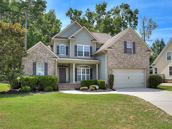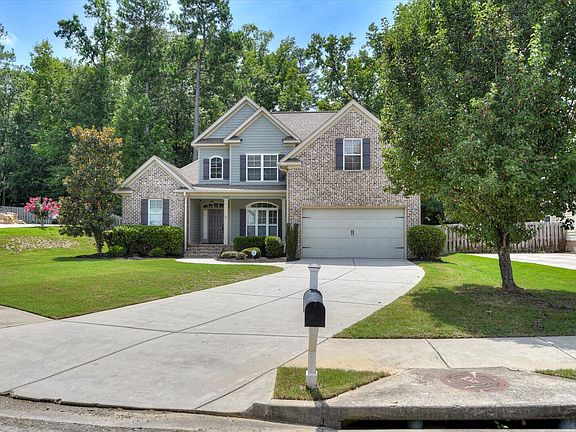 This lovely, Energy Star home is located in a cul-de-sac in popular Sumter Landing neighborhood. This home features 4BR's and 2.5BA's w/Jack & Jill upstairs. Owner's suite on main with large on-suite that has two separate vanities with granite counter-tops, jacuzzi and step in shower. Open kitchen has stainless steel/black appliances, granite counter-tops, stained wood cabinetry and casual dining area that looks out over the rear yard. The Great Room w/gas log fireplace has high ceilings and opens out onto the patio. Hardwood, new carpet throughout and tile flooring in home. Large, fenced rear yard. Fresh, neutral color paint throughout home. Family friendly neighborhood w/pool, pavilion, playground and nature trails that lead to a private neighborhood island and day dock on Savannah River that residents may use. Great Columbia County schools. Total electric except for FP & that uses propane (Dixie Gas Co). Covered, Rocking Chair front porch allows you to pull up a chair and sip your choice of drink while chatting with your neighbors.