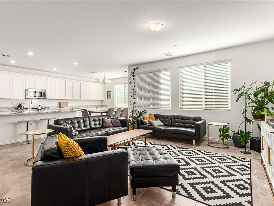 Welcome to this beautiful 2-story home featuring a charming paver driveway and a 2-car garage! Inside, the spacious great room invites lively gatherings, enhanced by tile floors in all the right places. The kitchen is a true delight showcasing sleek granite counters, white cabinetry, stainless steel appliances, wall ovens, and a center island with a breakfast bar perfect for morning coffee or casual meals. Upstairs, a versatile loft offers the perfect media or game room setup. The main bedroom promises comfort with double sinks and granite counters. Unwind in the serene backyard featuring a covered patio and low-maintenance artificial turf an ideal spot to relax or entertain. Conveniently located near popular dining, freeways, and local amenities, this home blends comfort, style, and convenience in one perfect package!