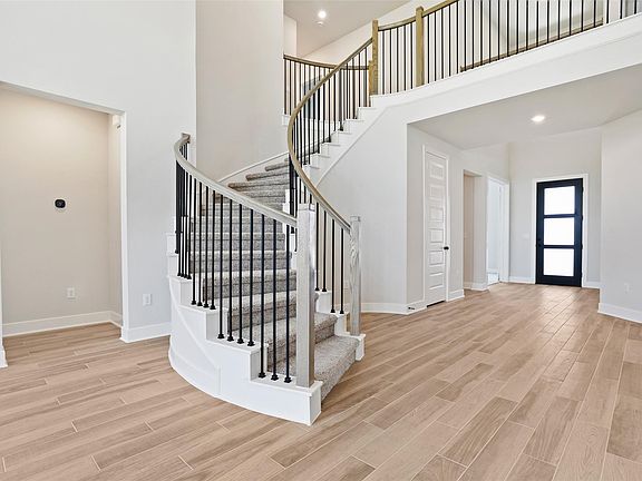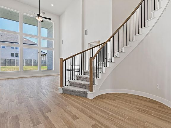 Westin Homes NEW Construction (The Cooper - A) READY NOW! In highly sought after Wolf Ranch. OVERSIZED LOT & 3 CAR GARAGE! Gorgeous 2-Story Rotunda Entry with Wrought Iron Circular Staircase. Gourmet Open Island Kitchen with Quartz Countertops, 42" Tall Kitchen Cabinets with Uppers & Built-In Stainless Steel Appliances. Family Room with High Ceilings & Wall of Windows. Large Covered Patio. Private Primary Suite Down with Luxurious Bath Featuring Double Vanity Sinks with Quartz Countertops, Large Walk-in Shower & Free-Standing Tub. Guest Suite with Private Bath on First Floor. Study with Double Doors. Upstairs features Media Room, Game Room & 3 Beds / 2 Full Baths. Mud Room. Smart Home Package. Tray Ceilings, Architectural Details and more!