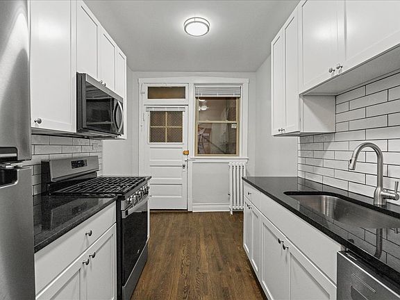 Modern kitchenGranite countersBrand-new hardwood floorsStainless steel appliancesNew cabinetry