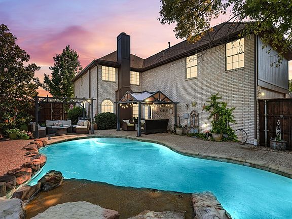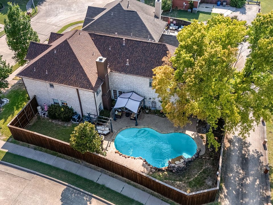 Immaculate one owner, two story home featuring 4 bedrooms and 2.5 bathrooms. Ideally located on a corner lot in a quiet cul-de-sac backing up to scenic Ford Park. This home offers a bright layout with elegant crown moulding, gas fireplace and a wet bar in the living room, perfect for entertaining. The main floor includes an office, formal dining room and a breakfast nook in the kitchen that opens to the spacious living area. Upstairs features a generous flex space and all bedrooms are tucked away for privacy, each with a walk in closet. Home also features central vacuum throughout the entire home 2 New AC units 2018, new pool filter 2023, fenced restained 2024. Enjoy a sparking saltwater pool, spacious patio and peaceful outdoor living. Located in an established neighborhood with NO HOA, close to Allen schools, trails, shopping and dining.