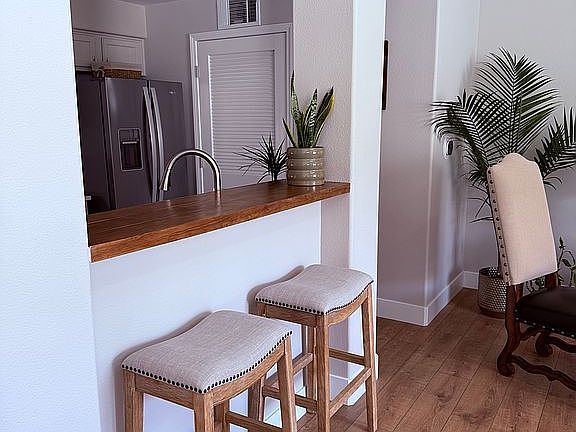 Modern vaulted ceilingsSunny condoNew quartz countertopsDesignated parking spotExtra storageProfessionally refinished cabinetsHiking trails