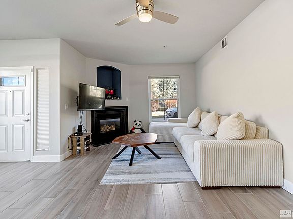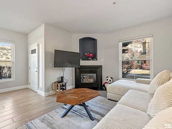 Tucked away in a gated South Reno community, this impeccably clean, single-story corner unit offers privacy, stunning upgrades, and effortless living. Completely remodeled, the open floor plan is highlighted by a modern kitchen, beautifully updated bathrooms, and sleek new ceramic tile flooring throughout. Enjoy breathtaking views from your home, with guest parking conveniently located right out front. The attached garage even features a sauna—perfect for warming up on chilly winter nights., Enjoy your morning coffee or an evening drink on one of the two patios while enjoying the nature view. These extra outdoor spaces make entertaining a breeze. Plus the community amenities include a pool and relaxing hot tub, making this condo a true retreat. Close to shopping, freeway access and amenities. Move in and start enjoying the best of South Reno living!