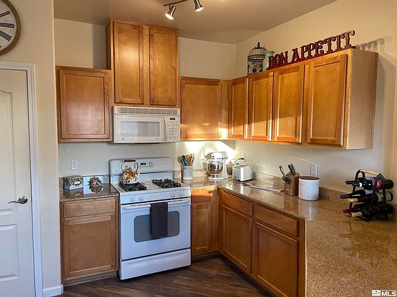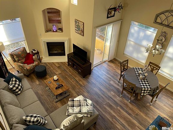 Enjoy 2 patios with views of Mt. Rose overlooking common area and the pool, new flooring, new light fixtures, custom blinds and tons of natural light. Custom sliding barn door in the guest room nook. Features granite counter tops, cathedral ceilings, 2-car side by side garage, and a loft with great storage. The wonderfully maintained community also features a pool, spa, barbecue area, playground set. Conveniently located in So Reno with easy access to both the freeway and the So East connector., Fridge, washer & dryer convey with the property.