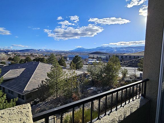 Premium location with unobstructed views of Mt Rose and the Virginia range along with 2 private patios to take them in. 2 bedrooms and 2 full bathrooms on the main level with an enormous loft that can be used as an office or a 3rd bedroom complete with a large closet. Gorgeous hardwood floors, high ceilings, and solid granite counters are just a few things that will make you want to call this home. The oversized 2 car garage boasts a workshop and a brand new whisper quiet garage door opener., This is the most desirable floor plan in the complex and it may just have the best views. Master bathroom cabinet and some kitchen cabinets have pullouts in them. Kitchen comes with moveable island. All TVs and wall mounts stay. Washer, dryer, refrigerator stay. Wall mounted nightstands in master stay and have electric outlets in them. All listed items stay with no implied warranty.