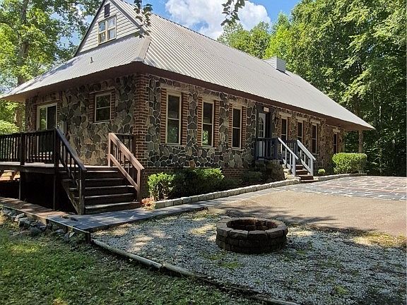 One of a kind prestigious natural stone exterior home in a beautiful private country setting. Spacious 2,900 sq ft layout with open floor plan, abundant natural light, and beautiful views from every room. Features include extra large living area, first-floor primary with bathroom nearby, updated kitchen with stainless steel appliances and modern finishes, new lighting, renovated bathrooms, luxury vinyl plank and original wood flooring, and ceiling fans throughout. Second floor offers large flex space ideal for 3rd bedroom, office, or media room. Exterior highlights: large side deck, firepit, storage shed, slate/paved driveway. Washer and new dryer included. Landlord will allow 1 pet; chickens allowed outside. Quiet, well-maintained, family-owned property. Easy 30-minute commute to Richmond or Williamsburg. Must see to fully appreciate.