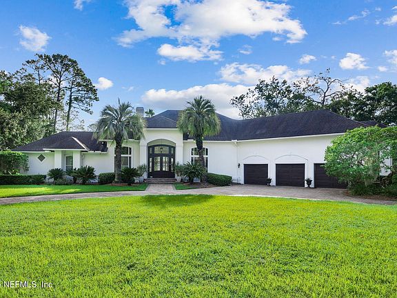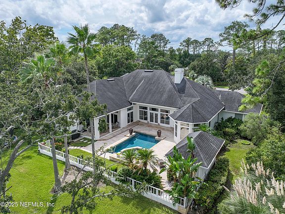 Rare opportunity to have it all in this highly sought after gated community in Ponte Vedra Beach, Florida. Where else can you find this much sq footage on over ¾ acres at the end of a cul-de-sac and steps from the Marsh Landing Country Club!!! This coastal-inspired home offers luxury, comfort, & versatility. The first-floor primary suite features a sitting area, fireplace, and flex room for fitness, additional office or nursery. Two main-level bedrooms with en-suites plus 2 upstairs bedrooms with a shared double vanity bath provide flexible family and guest space, along with a first-floor dedicated office. High ceilings, abundant natural light, and a functional floor plan enhance everyday living. Recently renovated chef's kitchen w/double ovens, induction cooktop, and new appliances opens to living areas with new sliding glass doors leading to a huge private backyard w/pool, built-in fire bowls w/ waterfall features, outdoor shower, bath house, and lanai w/retractable screens. Additional highlights include a 3-car garage, circular driveway, new wet bar, fresh interior/exterior paint, and two new HVAC units. Endless space to live, play, and entertain inside and out. Don't let this be the one that got away! Schedule your private tour today before it's too late!!