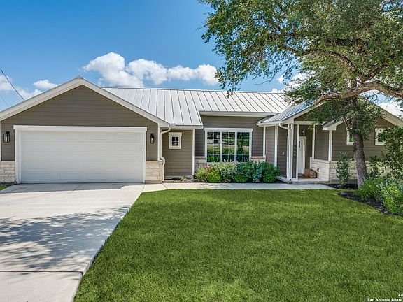 Welcome to your dream home! This beautifully crafted custom home on 1/3 acre in Rebecca Creek Park is designed with a bright, open floor plan and quality details throughout. This home blends modern comfort and natural charm. Large windows fill the space with natural light, creating a warm and inviting atmosphere. Enjoy the expansive living spaces, perfect for entertaining with the seamless flow from the kitchen to the dining and living areas. The primary bedroom is split from the secondary rooms, allowing for privacy and relaxation. It has a large sitting area and a stunning adjoining bathroom. Quality around every corner, metal roofing, spray foam insulation, custom cabinetry and extra storage in the garage and an EV charger for electric vehicles. The property backs up to a greenbelt, with access to Rebecca Creek. Relax on your covered patio and catch the latest game or down on your deck with the cabana with a relaxing coffee! Situated 10-30 minutes to New Braunfels, San Antonio, and the Hill Country quaint towns...you have the best of all worlds! Relaxing country - starry skies to the convenience of shopping, restaurants , entertainment and medical.