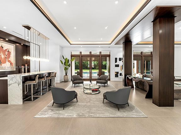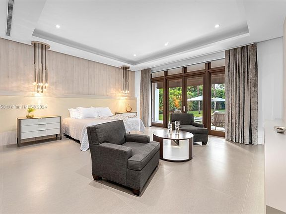 Welcome to this 2-story retreat, nestled in one of Pinecrest's most sought-after locations. The residence boasts impact windows throughout, offering views of the sprawling 37,990 SqFt lot. This home features 8 BD, 9.5 BA, a 3-car garage, generous living spaces, service quarters, and versatile rooms ideal for a gym or home theater. The primary ste located on the ground floor is a private haven with a sitting area, 2 walk-in closets, a spa-like tropical bathroom, and serene views of the sparkling pool. The home’s living spaces are enhanced by a wine display and bar, soaring volume ceilings, designer lighting, and spacious terraces. Step outside to enjoy the brand-new outdoor kitchen, set in a lush backyard oasis surrounded by mature mango trees.