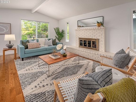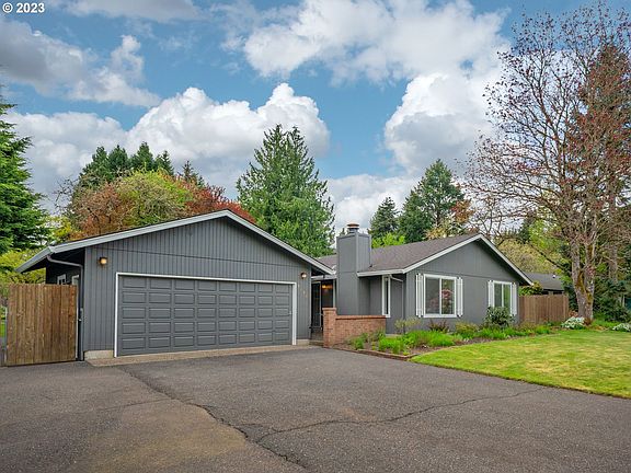 Mid-century Urban Oasis in the Heart of Tigard on ½ Acre! This 3 Bed, 2 Bath Remodeled Ranch lives large, just blocks to downtown Tigard. Modern updates abound alongside swanky mid-century dazzle. New hardwood floors throughout well-appointed, sunny spaces. Large, open living room has vaulted ceilings, a chic white brick fireplace and formal dining space = Perfect for entertaining. Recently updated modern kitchen boasts butcher block counters, SS appliances and tile backsplash plus additional dining space for breakfast that opens to a patio in the gorgeous yard. Spacious primary ensuite w/ dual vanity and walk-in shower. Main level living couldn't be easier! This is a coveted, dividable lot (buyer due diligence) with endless possibilities. Build a second house! Play sports in the sun. Relish in this gardener's dream & bird sanctuary with beds, irrigation, your own pond and pristine landscaping. Detached, finished garage & long driveway w/ space for RV parking. Plus a huge party patio. Proximity to downtown dining, the public library & Fanno Creek Park. Welcome home!