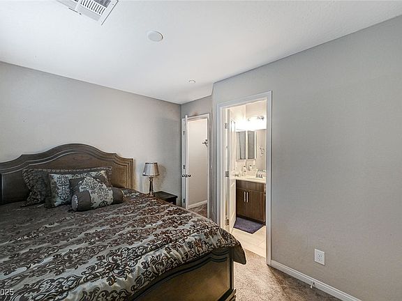This luxury townhome, occupied for less than 30 days since it was built, feels brand new and comes complete with modern furnishings. Enjoy a private rooftop deck with breathtaking views of the Strip, city skyline, and mountains. Inside, three spacious bedrooms each feature their own full bathroom, plus an additional half bath off the main living area. The open-concept kitchen and living space offer stunning views, while the primary suite boasts a spa-like bath with a full tub, separate shower, and walk-in closet. Located within a secure, gated community, this home includes a private attached two-car garage and access to resort-style amenities—full fitness center, pool, and more. With its barely-lived-in condition, modern style, and unbeatable location, this is a rare opportunity to own a home that feels brand new in a highly sought-after setting.