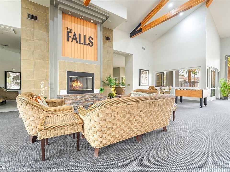 Welcome to your dream condo in the sought after 89148 zip! This 2-bed, 2-bath home offers elegance, comfort & convenience. Enjoy multiple living areas including a cozy family room & dining/kitchen space, perfect for hosting. The primary suite is a true retreat with an oval soaking tub. Step outside to an oasis featuring a massive resort-style pool, BBQ area, covered patio & well-manicured desert landscaping, all low-maintenance & covered by the HOA. Community perks include a gated entrance, patrolling security, fitness room, & your personal carport (#462). Location is unbeatable with quick access to shopping, the airport, Downtown Las Vegas, Summerlin, local casinos, Red Rock Canyon, parks & Cowabunga Bay. Seller is open to all Buyer/Broker options! Don’t miss this chance to live the lifestyle you’ve been dreaming of!