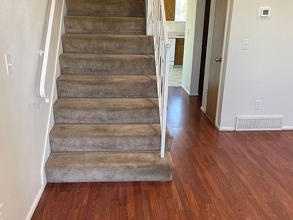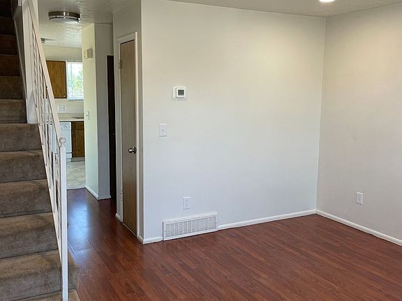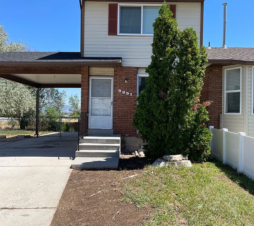 Two bedroom, 1.5 bath twin home in West Jordan. Big fenced yard. Carport to cover car. Main floor has living room area, kitchen/dining area, and 1/2 bathroom. Upstairs has 2 bedrooms and 1 full bathrooms. Basement has big unfinished area, storage shelves, and washer/dryer hookups.