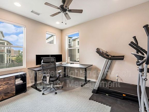 Situated on a corner lot, this property offers added privacy and a spacious feel. Ceiling fans are installed throughout the home, providing comfort and energy efficiency. The master suite includes a walk-in closet a spacious bathroom with dual vanities and oversized shower. This property has everything you need to enjoy comfortable living in Highlands Ranch. Tenants also have access to 4 rec centers with pools, cardio machines, weight rooms and more! Don't miss out on this incredible opportunity to make this former model home your own!