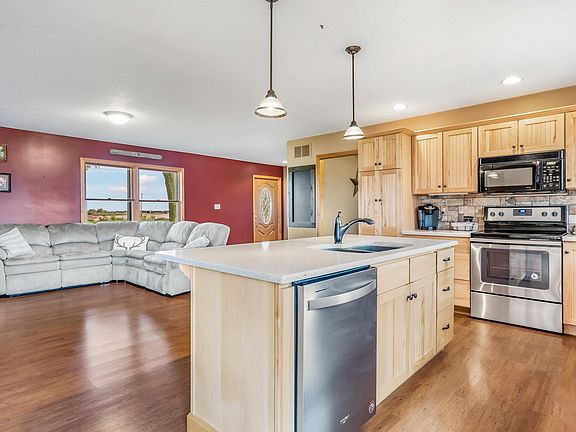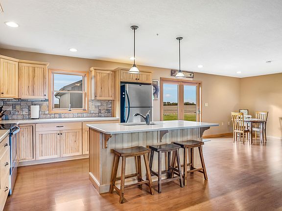 Don’t miss this country property on just over an acre. Enjoy unobstructed country views from the front porch and your own stocked pond. Inside you will find an open floor plan kitchen/living room, mudroom, 2 bedrooms and 1 1/2 bathrooms on the main level. Upstairs is a bedroom, bonus room and owners suite complete with 2 separate closets. Extra space for your hobbies in the 16x22 building with electric and automated door or at the workbench in the attached garage. Take advantage of the low maintenance country living with a metal roof and newer furnace and a/c.