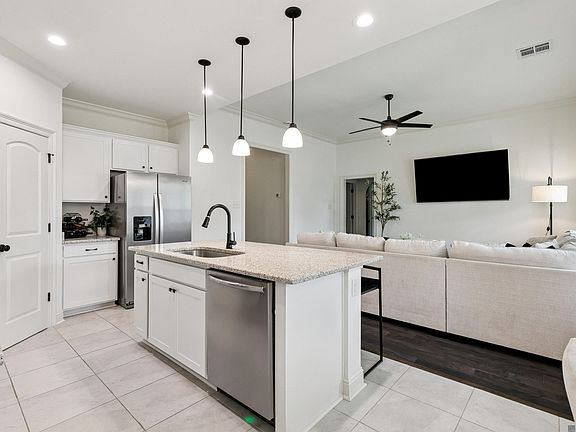 Welcome to 9052 Asoka Ave in the Willow Run subdivision of Baton Rouge. This location places you about 1 mile from Bluebonnet Boulevard, and the Perkins Rowe shopping district, and roughly 3.5 miles from the heart of the LSU campus. Everyday conveniences, dining, and recreation are all nearby, yet the neighborhood itself maintains a quiet, residential feel. The 2 year old home by DSLD offers a modern open-concept layout with a natural flow between the kitchen, dining, and living areas. The kitchen features white cabinetry, granite countertops, stainless-steel appliances, and a large island that anchors the space. The interior feels bright and balanced with neutral tones, tile and wood-style flooring in the main areas, and soft carpet in the bedrooms. The split-floor plan gives the primary suite privacy, complete with a double-vanity bath, separate shower, and soaking tub. Two additional bedrooms and a second full bath sit on the opposite side of the home. Out back, a covered patio opens to a fenced yard that is perfect for relaxing or entertaining. With clean lines, quality finishes, and energy-efficient construction, this home delivers comfort, simplicity, and style in a well-kept setting that continues to grow in value.