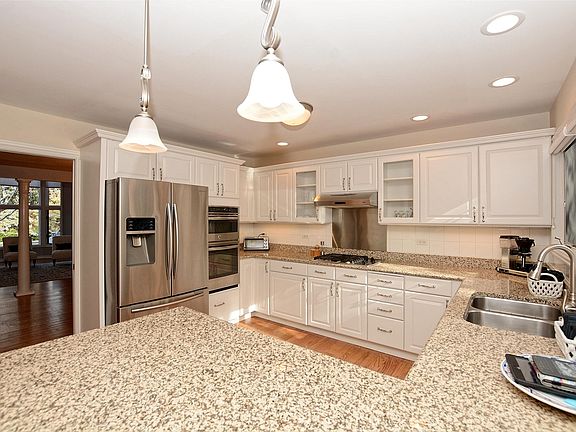 You'll love owning this Updated Corner Two Story Town home nestled in the woods with breathtaking views for all Seasons. This home has been recently painted and refinished hardwood floors on first and second floor. Two story Formal living room and dining room. Large Eat-in kitchen with new white cabinet doors, granite counters, ss appliances including refrigerator, dishwasher, microwave and stove. Breakfast bar area too. First floor family room with Fireplace and new surround tile. Second floor has over sized bedrooms and loft. Master bedroom has full bath including whirlpool tub and steam shower, plenty of closet space. Second floor Washer and dryer 2015. Finished basement has Wet bar, Theater room, and storage. New Stamped concrete patio and brick wall. FA/CAC 2015. Alarm system, central vac, humidifier. Motion sensor lights too. Custom made window treatments. Show and sell. Quick occupancy available.