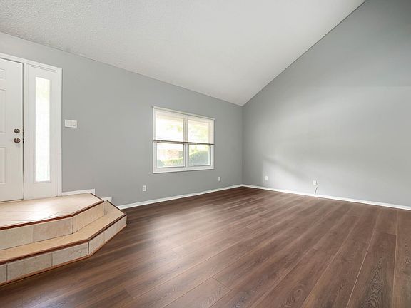 Insulated overhead garage doorCovered front porchOpen staircaseTile entryCathedral ceilingsPella sliding glass doorSide patio