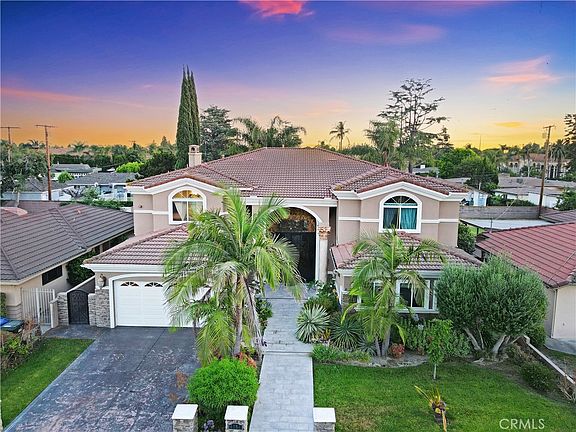 Exquisitely appointed 6 bedroom, 6.5 bath Northeast Downey pool home built in 2007 with newly remodeled kitchen and entertainer's oasis-like backyard with recently re-done pool, spa, deck and covered patio. The impressive tall wrought iron front doors lead you to a dual staircase entry. The home has one bedroom and 1.5 bathrooms downstairs and 5 bedrooms and 5 bathroom upstairs, including a primary suite that spans the entire back of the property with sitting room (retreat), spacious bedroom, and large primary bathroom with dual sinks, separate tub and shower, and large closet. The downstairs includes a formal living room, family room with fireplace and wet bar, and a new kitchen with new cabinetry and counters, dual refrigerator, dual sinks, new appliances, large pantry and a spacious everyday eating area -- all that overlook the beautiful backyard. Other features include upstairs laundry room, solar panels for a low electricity bill, whole house water filtration system and a 3 car tandem garage. The best that Northeast Downey!!