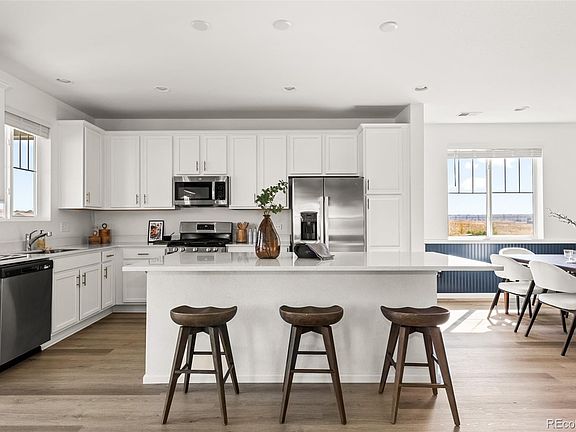 Discover this beautifully maintained corner-lot home in the cherished Reunion neighborhood, where every detail is designed to enhance both comfort and style. This spacious 2-story residence features 3 bedrooms, 3 bathrooms, and a floor plan that balances everyday convenience with modern elegance. Step onto the inviting front porch, perfect for morning coffee or evening sunsets, before entering a light-filled home with soaring ceilings and an open layout that’s ideal for entertaining. The gourmet kitchen is a true centerpiece, showcasing stainless steel appliances, granite countertops, a large center island, and seamless flow into the dining and living areas. Just off the entry, a private study provides the perfect home office, while upstairs you’ll find an airy loft offering versatile living options—whether as a second family room, play area, or creative space. Retreat to the luxurious primary suite, complete with a spa-like ensuite featuring dual vanities, a glass-enclosed shower, and a spacious walk-in closet. Two additional bedrooms and a full bath provide plenty of space for family or guests. The backyard is an entertainer’s dream with a covered patio and plenty of room to gather for summer barbecues or evening relaxation. An oversized 3-car garage ensures ample storage for vehicles, gear, and hobbies. Ideally located minutes from Reunion’s community parks, trails, and recreation center, and with quick access to DIA and downtown Denver, this home offers the perfect balance of suburban tranquility and city convenience.