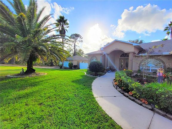 Here is the home not only for you but for ALL your TOYS! If you're looking for extra storage for the motorhome, boat, motorcycles, or just want an extra garage for whatever hobbies you might want to start or already have. For those who like to collect, you have a three-car attached garage to keep your daily driver or show cars in. This home also features a detached 2+ car garage. How about a workshop? Well, here it is! This gorgeous home has all the space for you. A custom-built home that was designed for entertaining with an open floor plan so everyone is a part of the gatherings that you will have. The open concept design and split bedrooms allow for privacy with everyone having access to all the great features of the home with plenty of light. A wonderful Solar Heated Pool. Swim Year-round. Sprinkler system. This home features a covered pool lanai with ceiling fans. Mount the TV on the pool deck and watch the Game or Race with the area being fully screened-in it gives you plenty of Florida fun. This is a great Pool Lanai for BBQs and to have Family & Friends gather. Wonderful flow and workspace. The seller has one bedroom set up as a TV/Lounge room. Enjoy the Jetted Tub in the Master Bath Ensuite with double sinks and plenty of space to get ready for the day. This home has all the bases covered and is a GRAND-SLAM, so make an appointment to see it today.