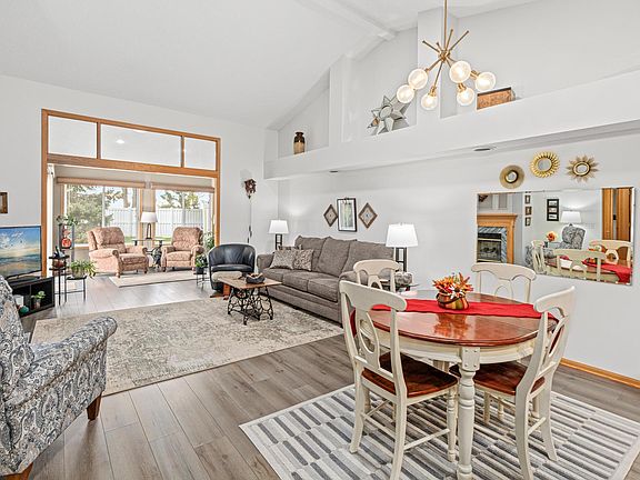 Gas fireplaceLuxury vinyl plank floorsLvp flooringVaulted ceilingsSun setter shadeGutter coversOpen concept