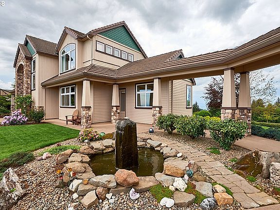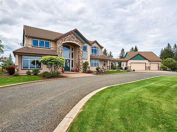 Top of hill views in exciting growing Eola Hills AVA! Plant your 3 acre Pinot Noir hobby vineyard. Produce your own label wine for gifts & enjoyment. Many outbuildings for 'winery', art studio, animals, shop, & indoor RV garage. Luxury home is amazing, filled with light and delight with walls of windows. Wonderfully landscaped grounds and park-like scenery; pergola-covered outdoor entertaining spaces. This home & property is a must see!